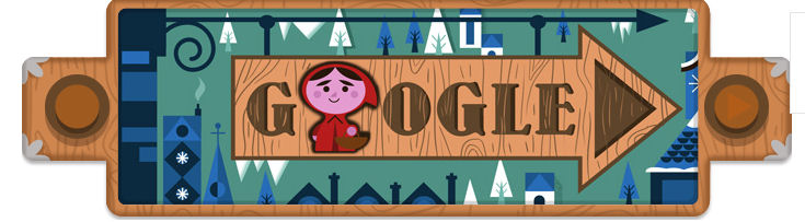 Red Riding Hood made it onto Google today! I admit, I love Google doodles. For the 200th Anniversary of Grimm’s Fairy Tales, Google has a moving storybook of the tale of Red Riding Hood. Though this version is not quite as “Grimm” as I remember the tale–I’ve heard variations where the wolf was not only caught by the huntsmen, but then killed, or in one gruesome version, the wolf’s stomach was filled with stones in place of Red and Grandma and he was allowed to die slowly and horribly.